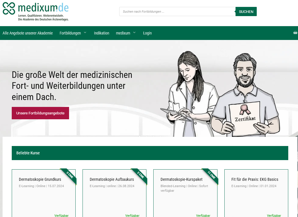 Der Deutsche Ärzteverlag gibt mit dem Deutschen Ärzteblatt die wichtigste Lektüre der hiesigen Ärzteschaft heraus. Mit medixum.de betreibt der Verlag aus Köln auch in der digitalen Welt nun eine Wissensplattform. Für nahezu 400.000 Mediziner*innen in Deutschland bündelt die Plattform die Fort- und Weiterbildungsangebote von Kammern, Fachgesellschaften und weiteren Wissensanbietern. Einzelne Ärzt*innen finden in der Akademie ein breites Spektrum an profunden Fachfortbildungen. Der Clou steckt aber unter der Oberfläche. Dank multimandantenfähigem Lernmanagementsystem kann der Verlag auch ganze Belegschaften von Praxen, Kliniken oder MVZ mit einem digitalen Rund-um-sorglos-Lernpaket versorgen.